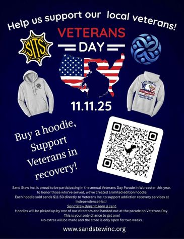 Sand Stew Inc. is marching in the Veterans Day Parade in Worcester this year, and we’ve created a limited edition hoodie to honor those who served!